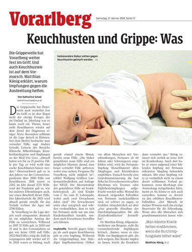 Die Grippewelle hat Vorarlberg weiter fest im Griff. Und auch Keuchhusten ist auf dem Vormarsch. Matthias König erklärt, warum Impfungen gegen die Ausbreitung helfen.