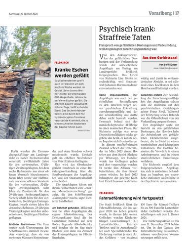Freispruch von gefährlichen Drohungen und Verleumdung, weil Angeklagter zurechnungsunfähig war.
