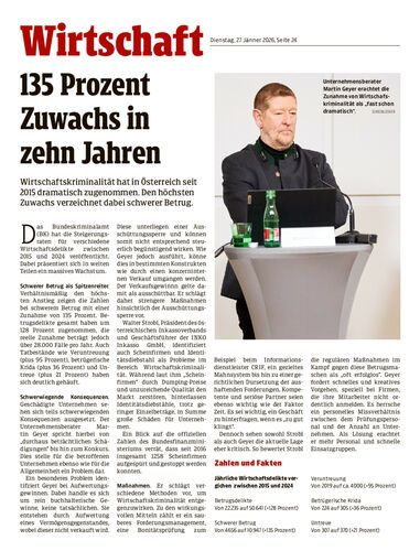 Wirtschaftskriminalität hat in Österreich seit 2015 dramatisch zugenommen. Den höchsten Zuwachs verzeichnet dabei schwerer Betrug.