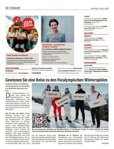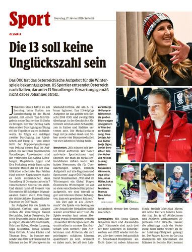 Das ÖOC hat das österreichische Aufgebot für die Winterspiele bekanntgegeben. 115 Sportler entsendet Österreich nach Italien, darunter 13 Vorarlberger. Erwartungsgemäß nicht dabei: Johannes Strolz.