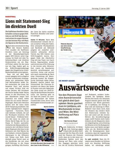 Die Raiffeisen Dornbirn Lions behalten zuhause gegen KOS Celovec mit 95:87 die Nerven und setzen im engen Rennen um den letzten Play-off-Platz ein Signal an die Konkurrenz.