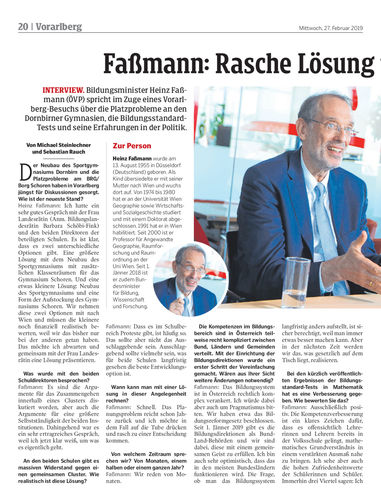 Interview. Bildungsminister Heinz Faßmann (ÖVP) spricht im Zuge eines Vorarlberg-Besuchs über die Platzprobleme an den Dornbirner Gymnasien, die Bildungsstandard-Tests und seine Erfahrungen in der Politik.