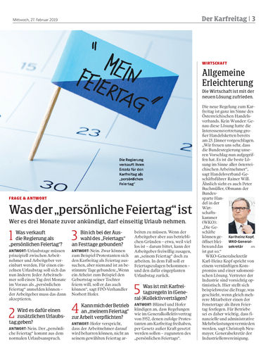 Die türkis-blaue Koalition zieht den „halben Feiertag“ zurück – und nimmt Protestanten einen Feiertag weg. Stattdessen darf jeder einen Urlaubstag einseitig zum „Feiertag“ erklären.
