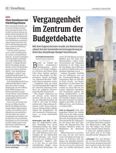 Mit drei Gegenstimmen wurde am Donnerstagabend bei der Gemeindevertretungssitzung in Hard das diesjährige Budget beschlossen.