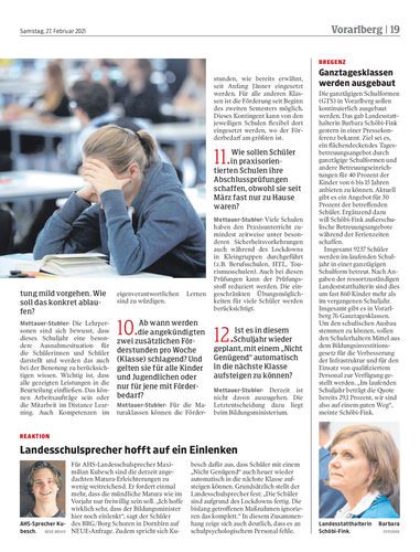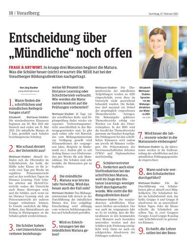 Frage & Antwort. In knapp drei Monaten beginnt die Matura. Was die Schüler heuer (nicht) erwartet: Die NEUE hat bei der Vorarlberger Bildungsdirektion nachgefragt.