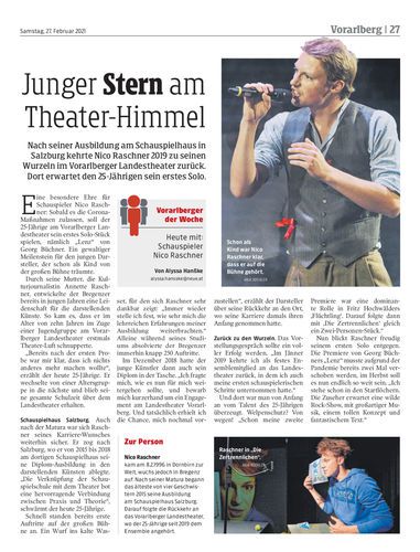 Wurzeln im Vorarlberger Landestheater zurück. Dort erwartet den 25-Jährigen sein erstes Solo.