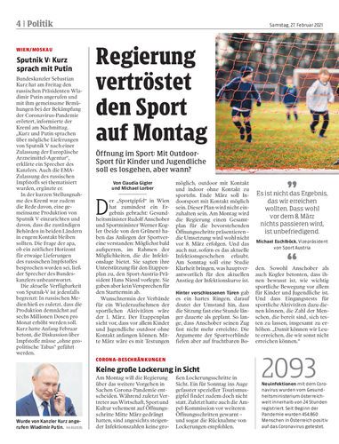 Sportgipfel. Beim Treffen von Sportminister Werner Kogler, Gesundheitsminister Rudolf Anschober und Vertretern des Sports wurde ein Konzept präsentiert. Erst am Montag klärt sich aber, ob es in Kraft tritt. Seiten 4/5 adobestock