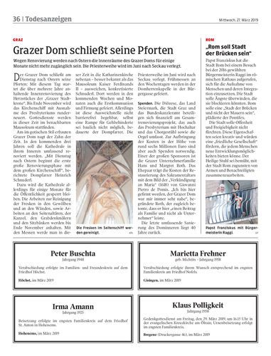 Monate nicht mehr zugänglich sein. Die Priesterweihe wird im Juni nach Seckau verlegt.