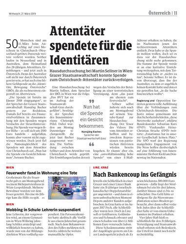 Hausdurchsuchung bei Martin Sellner in Wien: Grazer Staatsanwaltschaft konnte Spende zum Christchurch-Attentäter zurückverfolgen.