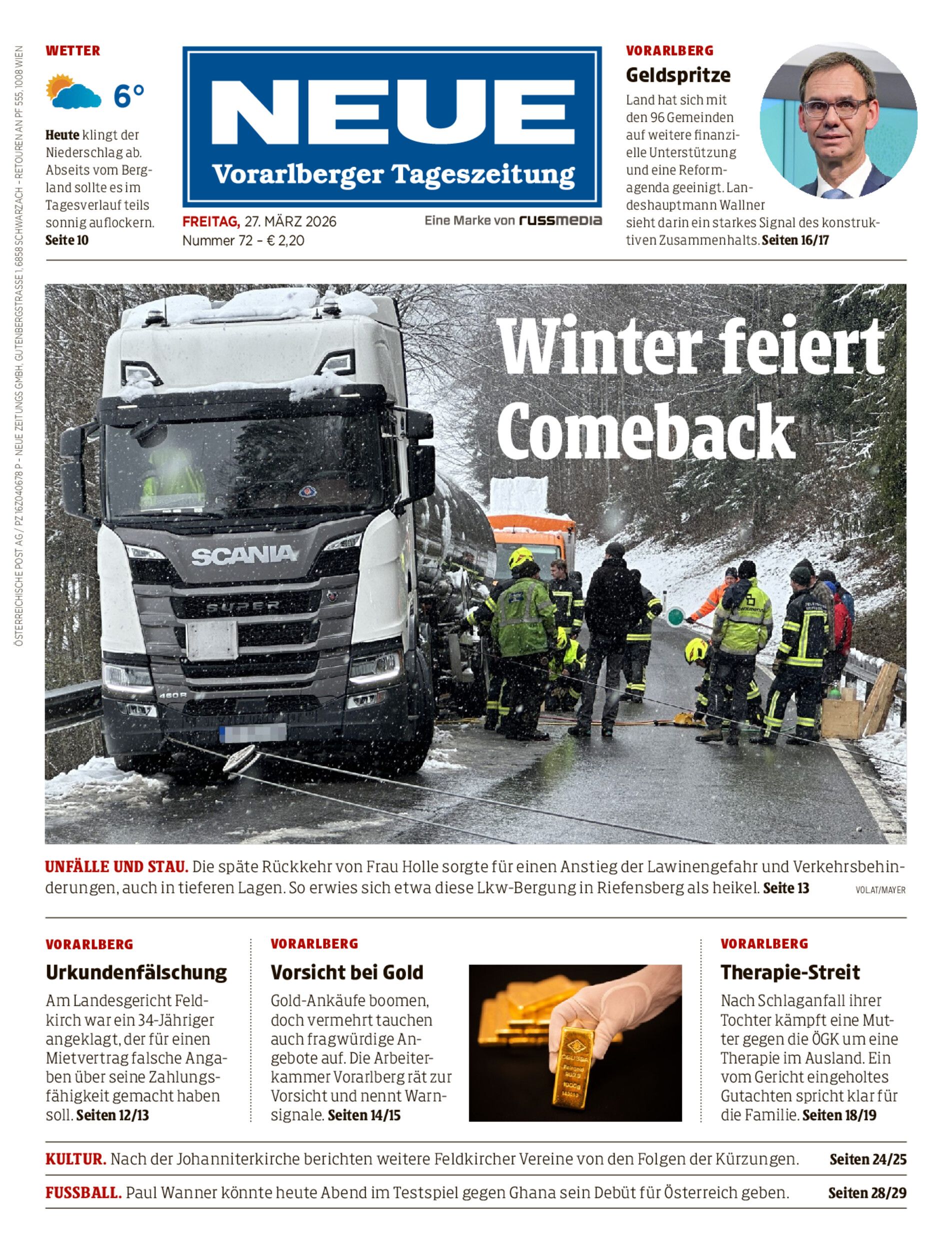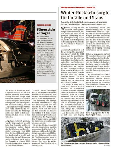 Zahlreiche Verkehrsbehinderungen wegen witterungsbedingten Zwischenfällen. Lawinenwarnstufe angehoben.