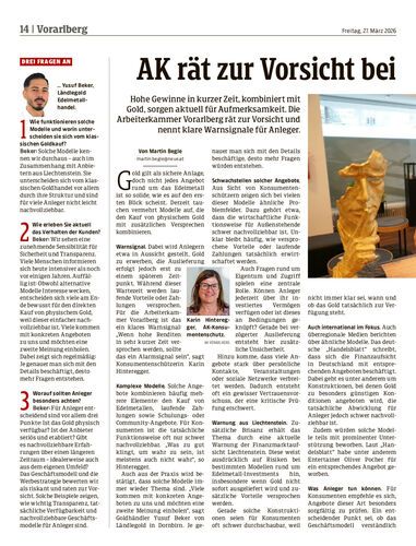 AK rät zur Vorsicht bei Anlagen in Gold
