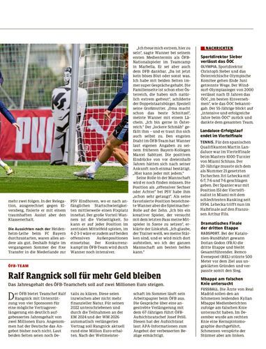 Xaver Schlager stand nichtim Mannschaftstraining