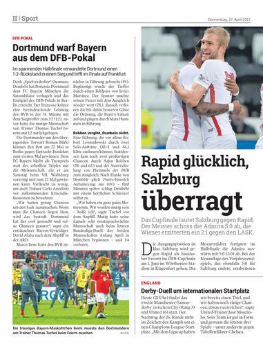 Das Cupfinale lautet Salzburg gegen Rapid. Der Meister schoss die Admira 5:0 ab, die Wiener erzitterten ein 2:1 gegen den LASK.