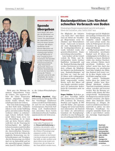 Baulandpetition: Lins fürchtet schnellen Verbrauch von Boden
