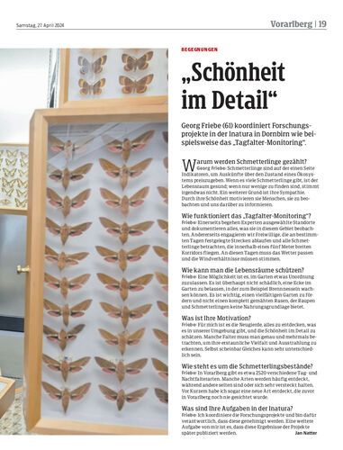 Georg Friebe (61) koordiniert Forschungsprojekte in der Inatura in Dornbirn wie beispielsweise das „Tagfalter-Monitoring“.