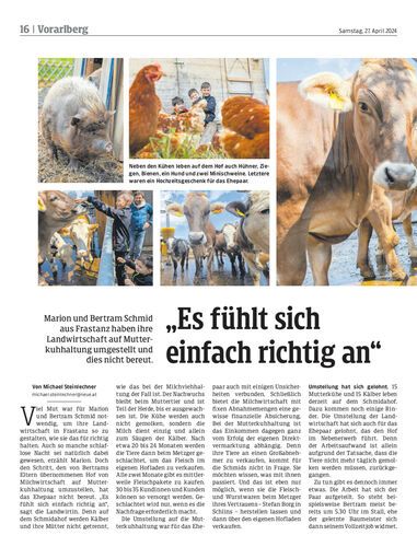 Marion und Bertram Schmid aus Frastanz haben ihre Landwirtschaft auf Mutterkuhhaltung umgestellt und dies nicht bereut.