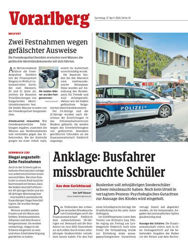 Die Fremdenpolizei Dornbirn erwischte zwei Männer, die gefälschte Identitätsdokumente mit sich führten.
