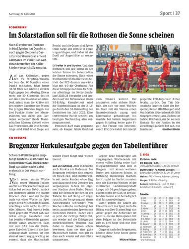 Nach 13 eroberten Punkten in fünf Spielen hat Dornbirn auch gegen die zweite Garnitur von Sturm Graz erneut Zählbares im Visier. Das Aufeinandertreffen der Kellerkinder verspricht Spannung.