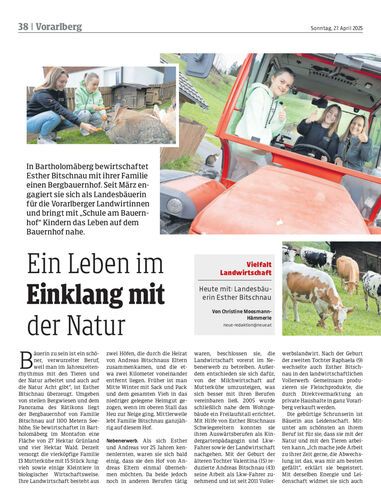 In Bartholomäberg bewirtschaftet Esther Bitschnau mit ihrer Familie einen Bergbauernhof. Seit März engagiert sie sich als Landesbäuerin für die Vorarlberger Landwirtinnen und bringt mit „Schule am Bauernhof“ Kindern das Leben auf dem Bauernhof nahe.