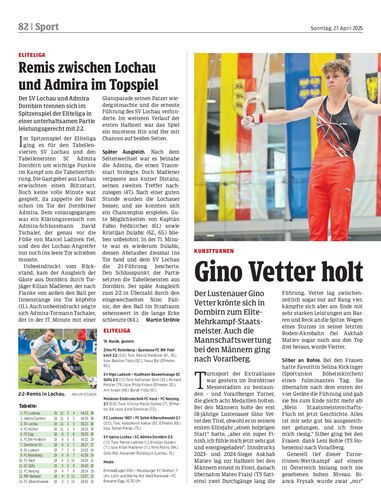 Der SV Lochau und Admira Dornbirn trennen sich im Spitzenspiel der Eliteliga in einer unterhaltsamen Partie leistungsgerecht mit 2:2.