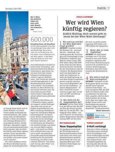 Heute werden in Wien Gemeinderat und Bezirksvertretung gewählt. Das betrifft auch rund 25.000 Vorarlberger, die in der Bundeshauptstadt leben. Die NEUE am Sonntag hat sich bei einigen umgehört.