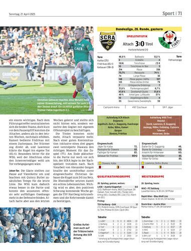 Spielbericht. Der SCR Altach feiert gegen die WSG Tirol einen verdienten 3:0-Erfolg, bejubelt den zweiten Heimsieg der Saison und setzt damit ein echtes Lebenszeichen im Abstiegskampf.