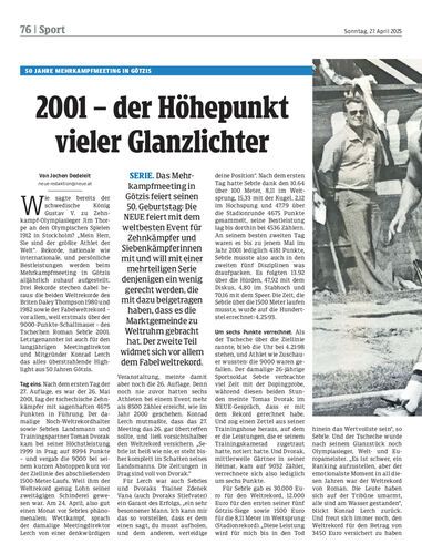 Serie. Das Mehrkampfmeeting in Götzis feiert seinen 50. Geburtstag: Die NEUE feiert mit dem weltbesten Event für Zehnkämpfer und Siebenkämpferinnen mit und will mit einer mehrteiligen Serie denjenigen ein wenig gerecht werden, die mit dazu beigetragen haben, dass es die Marktgemeinde zu Weltruhm gebracht hat. Der zweite Teil widmet sich vor allem dem Fabelweltrekord.