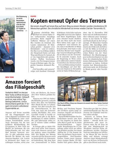 Verkehrte Welt? Im Herzen New Yorks eröffnet Amazon einen Bücherladen. Verkauft wird nur, was online Top-Ratings bekommt. Und in Deutschland greift der IT-Gigant mit einem Lieferdienst Supermärkte an.