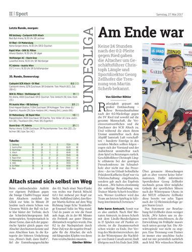Keine 24 Stunden nach der 0:2-Pleite gegen Ried gaben die Altacher um Geschäftsführer Christoph Längle und Sportdirektor Georg Zellhofer die Trennung von Martin Scherb bekannt.