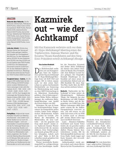 Mit Kai Kazmirek verletzte sich vor dem 43. Hypo-Mehrkampf-Meeting einer der Topfavoriten. Damian Warner und Nafissatou Thiam Kandidaten auf den Sieg. EAA-Präsident erteilt Achtkampf Absage.