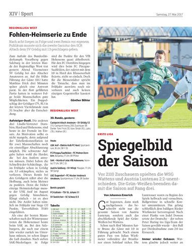 Vor 2110 Zuschauern spielten die WSG Wattens und Austria Lustenau 2:2-unentschieden. Die Grün-Weißen beenden damit die Saison auf Rang drei.