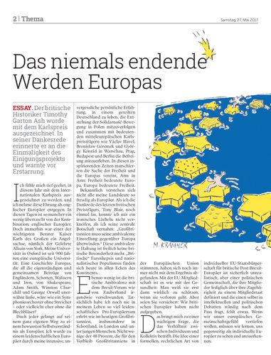 ESSAY. Der britische Historiker Timothy Garton Ash wurde mit dem Karlspreis ausgezeichnet. In seiner Dankesrede erinnerte er an die Einmaligkeit des Einigungsprojekts und warnte vor Erstarrung.