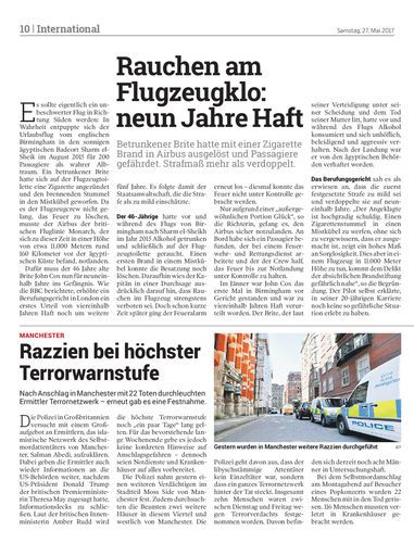 Betrunkener Brite hatte mit einer Zigarette Brand in Airbus ausgelöst und Passagiere gefährdet. Strafmaß mehr als verdoppelt.