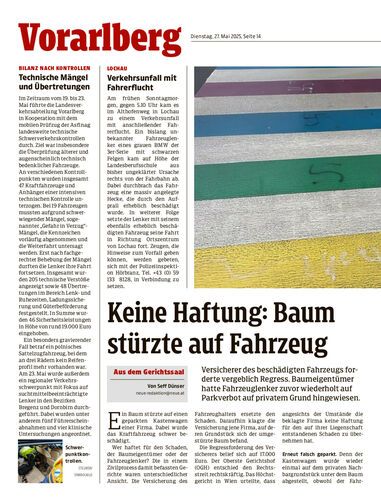 Versicherer des beschädigten Fahrzeugs forderte vergeblich Regress. Baumeigentümer hatte Fahrzeuglenker zuvor wiederholt auf Parkverbot auf privatem Grund hingewiesen.