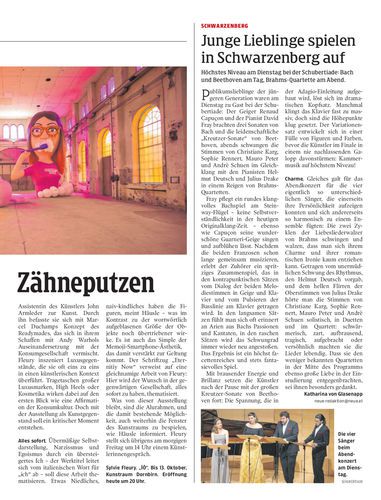 Höchstes Niveau am Dienstag bei der Schubertiade: Bach und Beethoven am Tag, Brahms-Quartette am Abend.