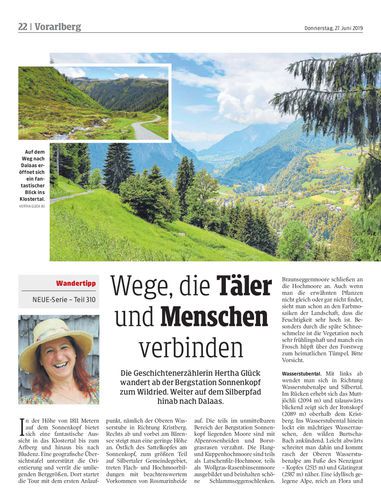 Die Geschichtenerzählerin Hertha Glück wandert ab der Bergstation Sonnenkopf zum Wildried. Weiter auf dem Silberpfad hinab nach Dalaas.