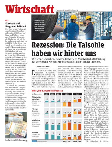 Wirtschaftsforscher erwarten frühestens 2022 Wirtschaftsleistung auf Vor-Corona-Niveau. Arbeitslosigkeit bleibt länger Problem.
