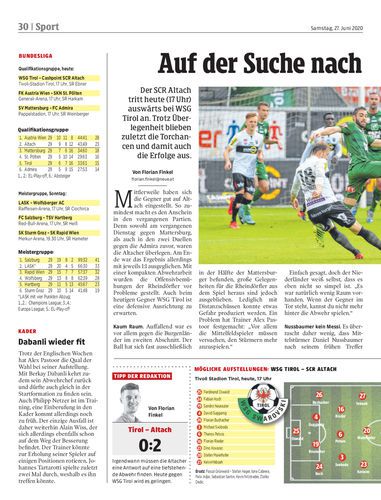 Der SCR Altach tritt heute (17 Uhr) auswärts bei WSG Tirol an. Trotz Überlegenheit blieben zuletzt die Torchancen und damit auch die Erfolge aus.