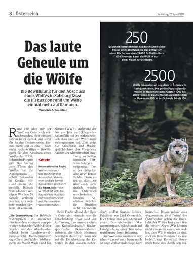 Österreich. Die Bewilligung für den Abschuss eines Wolfes in Salzburg lässt die Diskussion rund um Wölfe einmal mehr aufflammen. Viele Wildtiere kehren nach Österreich zurück. Nicht alle freut diese Wiederansiedlung. Seiten 8/9