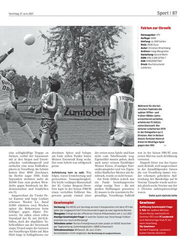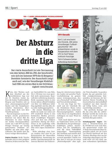 Der vierte Ausschnitt ist ein Textauszug von den Seiten 288 bis 290, der beschreibt, wie sich im Sommer 1979 die IG Bregenz/Dornbirn formierte. Der Ausschnitt zeigt auch auf, wie der Vorarlberger Klubfußball 1981 ein erstes Mal in der Drittklassigkeit verschwand.