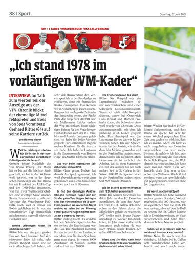 Interview. Im Talk zum vierten Teil der Auszüge aus der VFV-Chronik blickt der ehemalige Mittelfeldspieler und Boss von Spar Vorarlberg Gerhard Ritter (64) auf seine Karriere zurück.