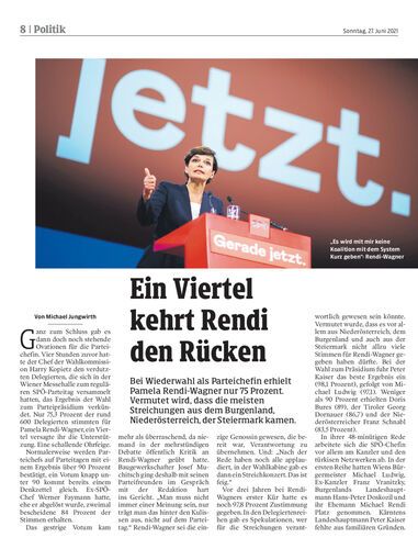Bei Wiederwahl als Parteichefin erhielt Pamela Rendi-Wagner nur 75 Prozent. Vermutet wird, dass die meisten Streichungen aus dem Burgenland, Niederösterreich, der Steiermark kamen.
