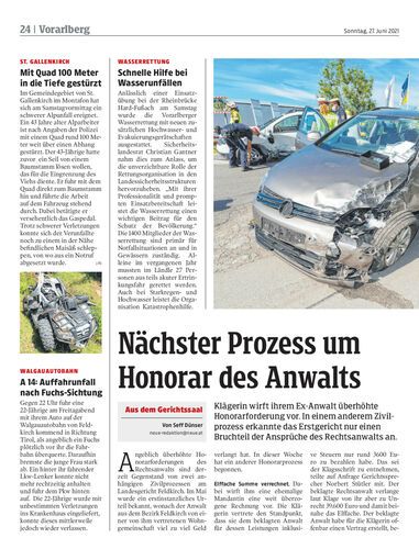 Klägerin wirft ihrem Ex-Anwalt überhöhte Honorarforderung vor. In einem anderem Zivil-prozess erkannte das Erstgericht nur einen Bruchteil der Ansprüche des Rechtsanwalts an.