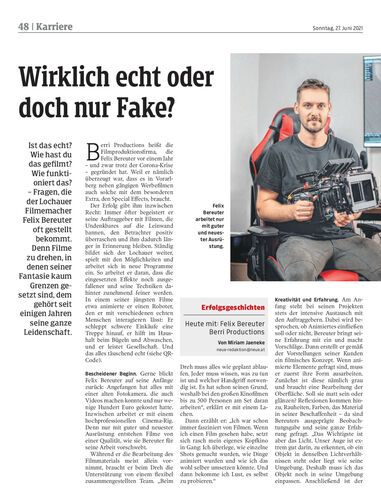 Ist das echt? Wie hast du das gefilmt? Wie funktioniert das? – Fragen, die der Lochauer Filmemacher Felix Bereuter oft gestellt bekommt. Denn Filme zu drehen, in denen seiner Fantasie kaum Grenzen gesetzt sind, dem gehört seit einigen Jahren seine ganze Leidenschaft.