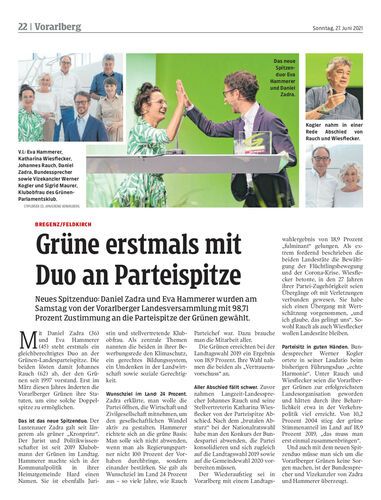 Neues Spitzenduo: Daniel Zadra und Eva Hammerer wurden am Samstag von der Vorarlberger Landesversammlung mit 98,71 Prozent Zustimmung an die Parteispitze der Grünen gewählt.