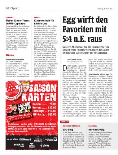 Gestern Abend war für die Hohenemser im Vorarlberger Pokalbewerb gegen die Egger Endstation. Lustenau ist der Finalgegner.