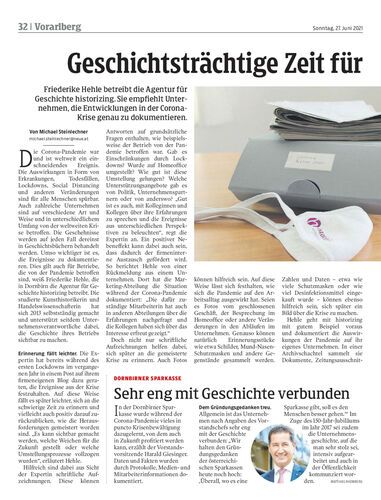 Friederike Hehle betreibt die Agentur für Geschichte historizing. Sie empfiehlt Unternehmen, die Entwicklungen in der Corona-Krise genau zu dokumentieren.