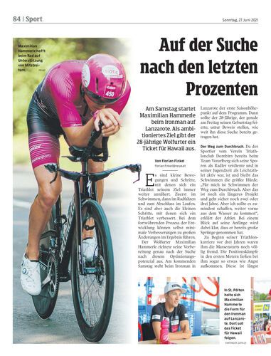 Am Samstag startet Maximilian Hammerle beim Ironman auf Lanzarote. Als ambitioniertes Ziel gibt der 28-jährige Wolfurter ein Ticket für Hawaii aus.