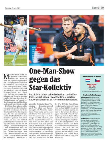Patrik Schick hat seine Tschechen in die K.o.-Phase geschossen. Im Achtelfinale warten heute geschlossen auftretende Niederländer.