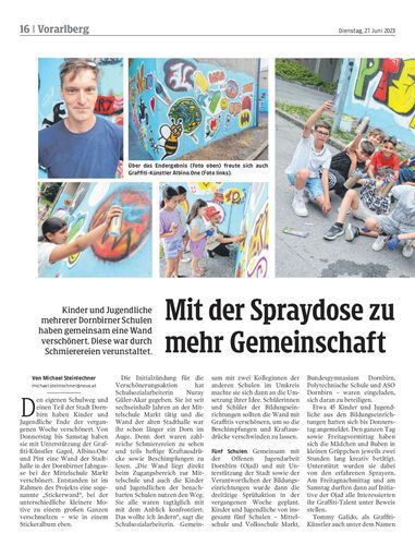 Kinder und Jugendliche mehrerer Dornbirner Schulen haben gemeinsam eine Wand verschönert. Diese war durch Schmierereien verunstaltet.